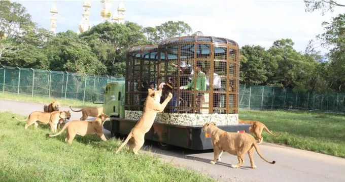 直接入住動物園裏面,可以看到活體動物在你身邊走動主題樂園有不同國家表演者的表演,進門的非洲國家藝人表演遊樂園的各種驚險刺激活動