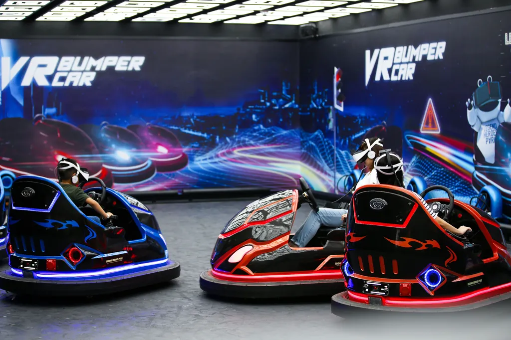 △ 在芒果島上搖身變為芒果一家人,享受著VR碰碰車的樂趣。