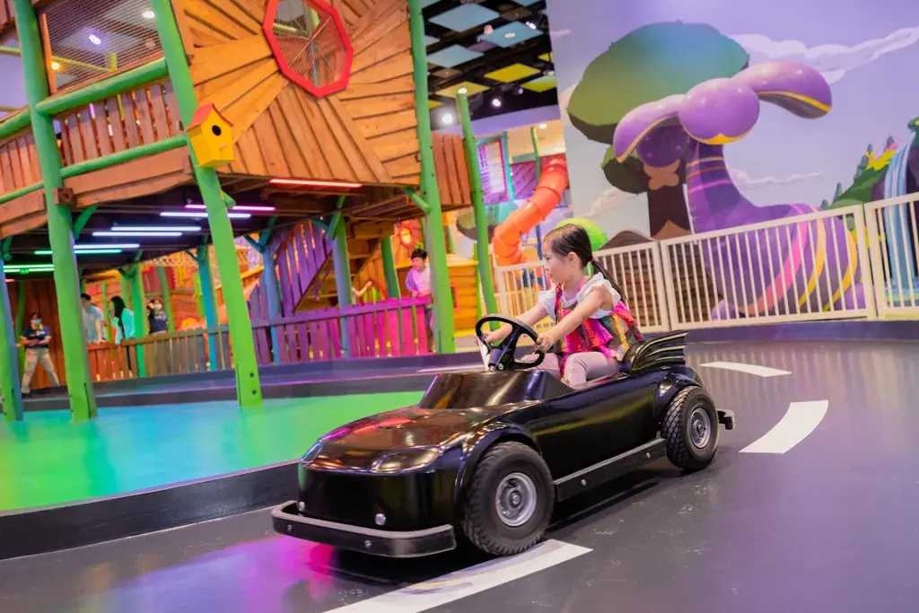 駕駛充滿電能的小汽車,在叢林和奇趣樹屋下的隧道風馳電掣。高度要求: ≥1 米