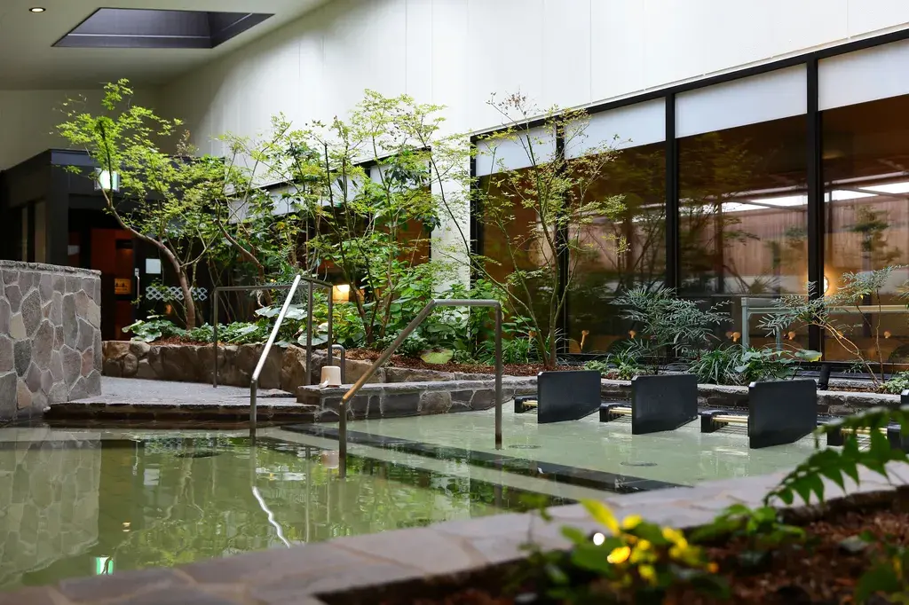 除了一般日本常見的男女分池溫泉外,還有可以一覽庭院風光的庭見風呂、露天溫泉、炭酸溫泉。每日都會變換的特色溫泉、三溫暖,以及來自地下1,000米湧出的弱鹼性天然溫泉「美肌之湯」。另外,還有岩盤浴、三温暖等,光是岩盤浴就有7種選擇的。