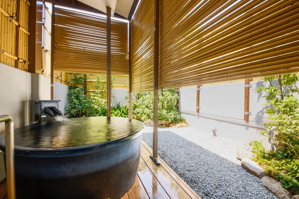 空庭溫泉備有10間包括源泉持續流動的露天溫泉及附設庭院,適合全家使用的獨立湯屋。其中包括可供4~6人使用的特別湯屋2間、可供1〜4人使用的獨立湯屋7間,以及可供輪椅使用的湯屋1間。歡迎在私密的空間中,盡情享受源泉持續流動的天然溫泉「美肌之湯」。非常適合女性友人聚會或慶祝活動。