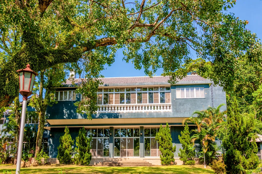△ 士林官邸正館官舍,紀錄了第一家庭的生活點滴,在歷史上的關鍵時刻更扮演了重要角色。不論是蔣介石夫婦生活起居的正館,或侍、警衞人員駐守的營房,均漆以墨綠色,與周邊樹林調和,兼具隱蔽、防護作用。