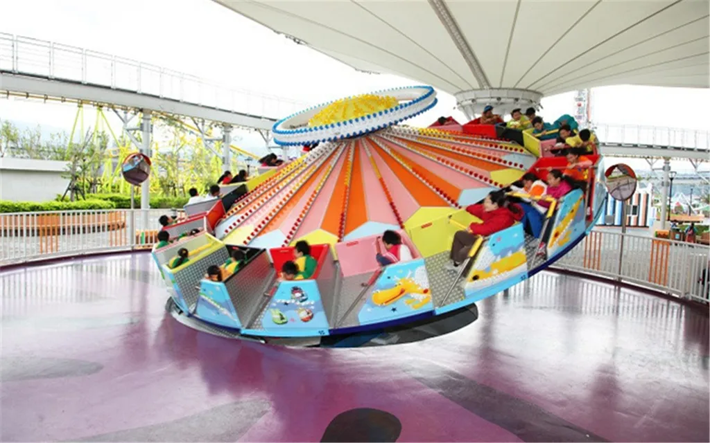 △ 舊有龍鳳船的改良版,以四條可愛飛龍相互追逐為主題之傾斜轉盤可360度旋轉,更好玩更刺激。