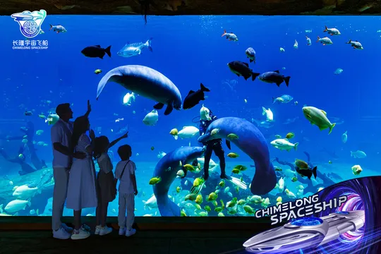 在長隆飛船樂園中,融合了動物展示,科普課堂,主題娛樂,全新的遊樂設施與極具創意的演出。綜合多媒體技術與演出實現寓教於樂的效果,讓遊客在遊覽中看到知識,在玩樂中獲取知識,在看演出和遊玩中,愛上海洋生態保育。