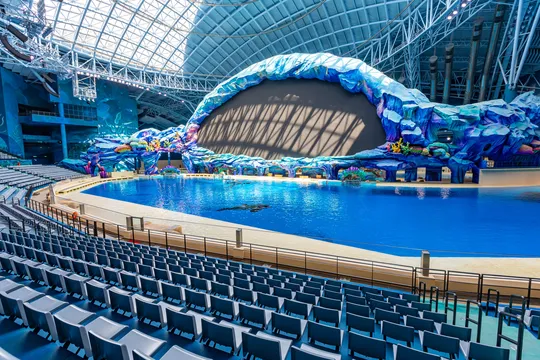 “虎鯨科普劇場”是穿越之旅的壓軸項目,可容納數千人進行鯨豚類科普課程,讓遊客收穫近在咫尺海底的驚喜,近距離了解海洋生物,認知海洋和保育的重要性。