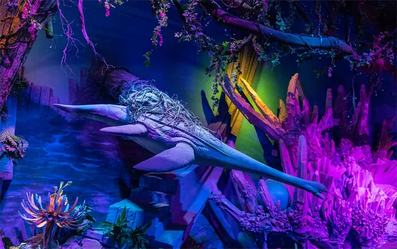 穿越著名的海洋捕食者星球即來到“太空龍宮”,在這個平行宇宙,遊客穿越古今與未來,將遇見史前海洋霸主——鄧氏魚、 魚龍等不可思議的遠古海洋生物。