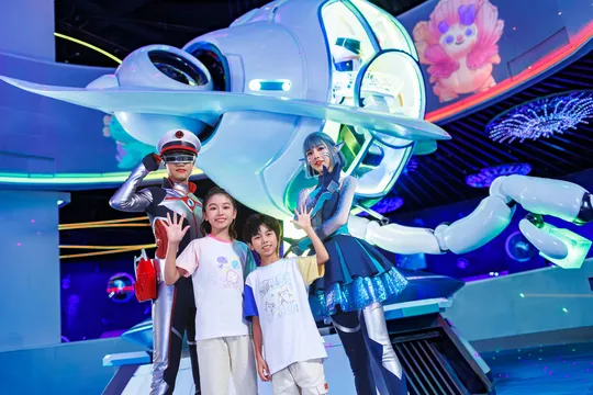 來到“星際站台”,遇見機甲大王、猿星人、武器大師,奇妙黑光秀“星際劇場”,以趣味和科技的手法演繹了水在不同形態的變化,寓教於樂,十分有趣。