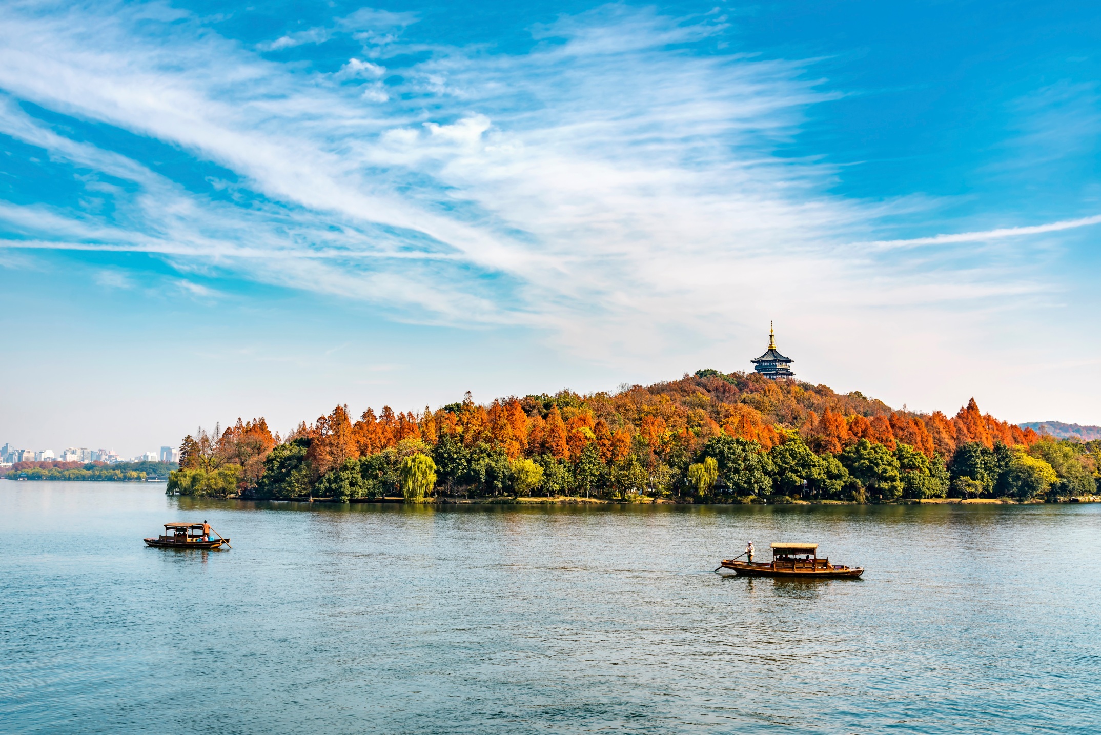一千個人的眼中有一千種西湖。你可以沿著湖岸散步,遊蘇堤、白堤,拍三潭印月,尋柳浪聞鶯,賞雷峰夕照,聽南屏晚鐘……也可以看一場《印象西湖》演出或音樂噴泉燈光秀。想要遠離人潮,不妨在晨霧中坐進悠悠搖櫓船,帶你深入茅家埠、烏龜潭、浴鵠灣等清幽「秘境」。還能沿著西湖踏單車,一路皆是風景。